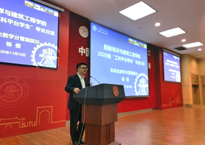 11月18日下午2点,船建学院2020级工科平台专业分流宣讲会在A200号举行。本科生教学分管副院长杨健、各系教学系主任余龙、程斌、尹静波,本科教务办袁敏、魏燕,学工办2020级辅导员吴佳妮,以及2020级新生等出席了此次宣讲会。